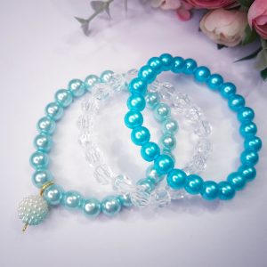 Pulseira para Bebê de Pérolas Azul e Transparente