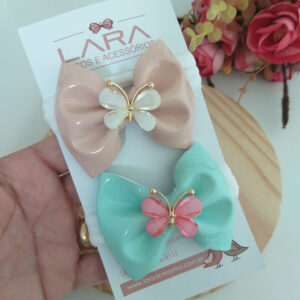 Laço Duplo de Cabelo Bebê Pompom Unidade