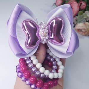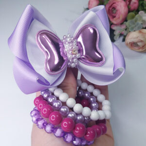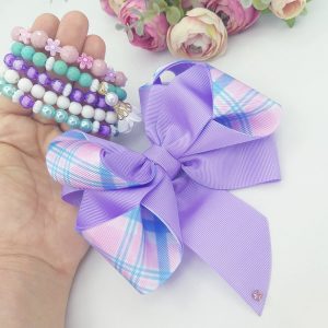 KIT LAÇO DE FITA LILÁS + PULSEIRAS