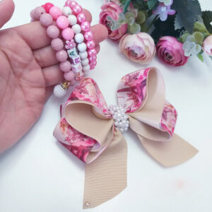Kit Laço e Pulseiras Infantil Menina Barbie