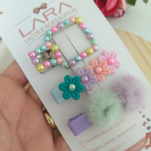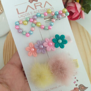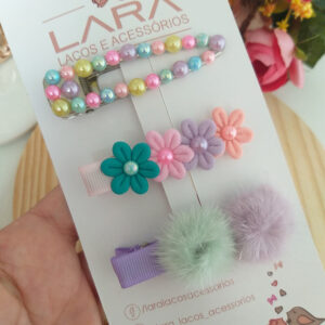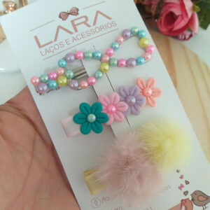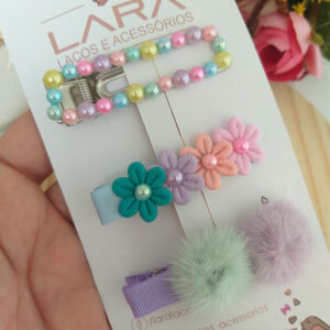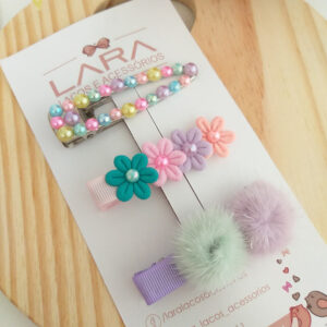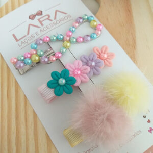 Presilha Hair Clips Florzinha e Lacinho- Par