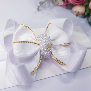 Faixa Batizado Bebê Laço Duplo Detalhe Dourado