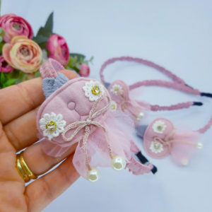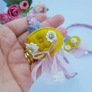 Tiara para Criança Encapada Gatinho Rosa e Amarelo
