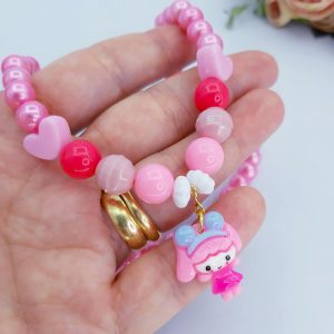 Kit Colar e Pulseira Infantil de Miçanga Adorável