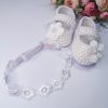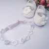 Sapatinho Branco para Batizado e Faixa Flor Ajustável