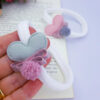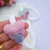 Material: faixa meia de seda com aplique coração e pompom malho