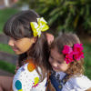 LAÇO DE CABELO BOUTIQUE COM FITA DUPLA E APLIQUE POMPOM