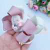 Laço Ursinho Pelúcia com 2 aplique coração pelúcia e ursinho no biscuit e fita n5 lindo