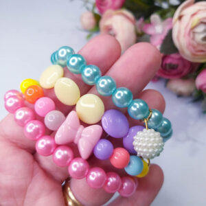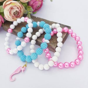 Kit com 4 pulseiras infantis, feito com miçangas , fio de silicone resistente