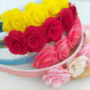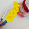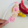 Tiara arquinho coberto com fita jeans respontadas e aplique flores de 3cm lindos escolha o seu preferido